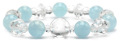 キューピッドクリスタル直径約10mm×1石・アクアマリン直径約10mm×7石・64面カットクリスタル直径約6mm×12石・ボタンカットクリスタル約10mm×5mm×6石・ダイヤカットクリスタル約5mm×2mm×2石・内周約16cm・シリコンゴム製
