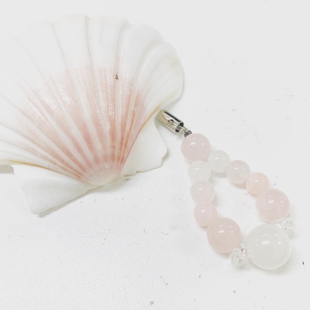 TOPムーンストーン ロングストラップ(ムーンストーン・ローズクォーツ・ピンクオパール・スノークォーツ・カットクリスタル)STM1 価格: ¥1,800 (税込) [ポイント還元 180ポイント~] 販売期間: 数量: 個 在庫 ○ 「愛を伝える石」ムーンストーン、「恋愛成就の石」ローズクオーツ、「縁結びの石」ピンクオパール、「幸運と平和をもたらす石」スノークォーツ、「浄化力に優れた石」クリスタルを組み合わせたストラップです。 ムーンストーン10㎜x1、ローズクォーツ8㎜x3・6㎜x2、ピンクオパール6㎜x2、スノークォーツ6㎜x2、カットクリスタル5㎜×2